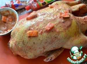 Тщательно натереть утку смесью со всех сторон и внутри.