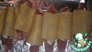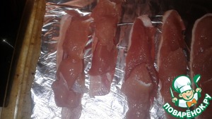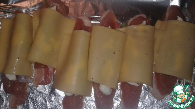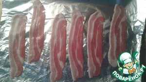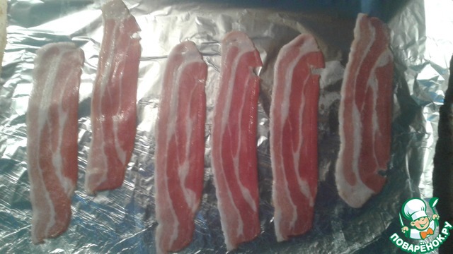 На фольгу выложить 6 ломтиков бекона.