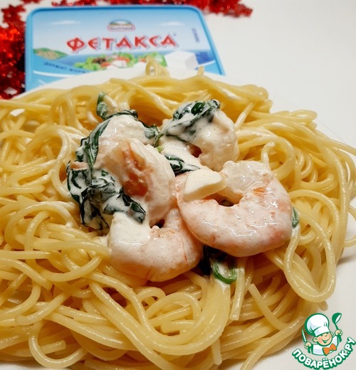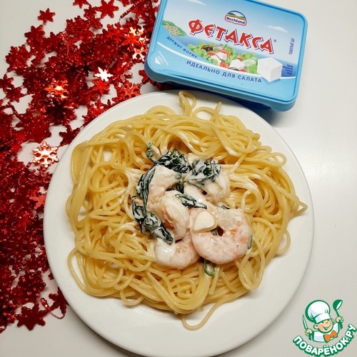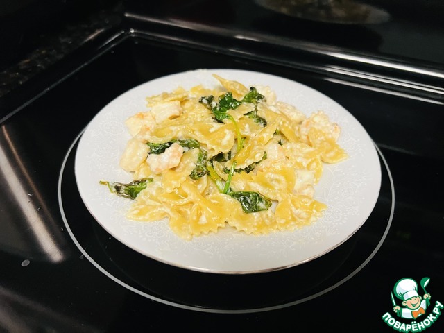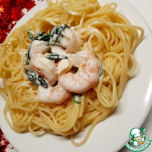 Рецепт «Сливочная паста с креветками и шпинатом»: