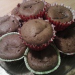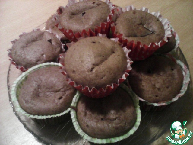 Получилось 12 кексов. Я пеку их и с молочным шоколадом, получается еще нежнее.