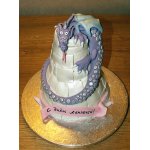 Лучше всего собирать торт в кондитерской кольце. Итак на дно кольца выложить несколько ложек крема и выложить первый корж. Сверху выложить часть крема и посыпать черносливом. Так как торт у меня получился очень большой и высокий я надточила кольцо файлами, скреплеными скрепками.