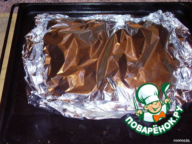 Когда начнет идти запах рыбки(у меня примерно через 10мин.), то рыбку вынуть и снять верхний лист фольги.