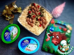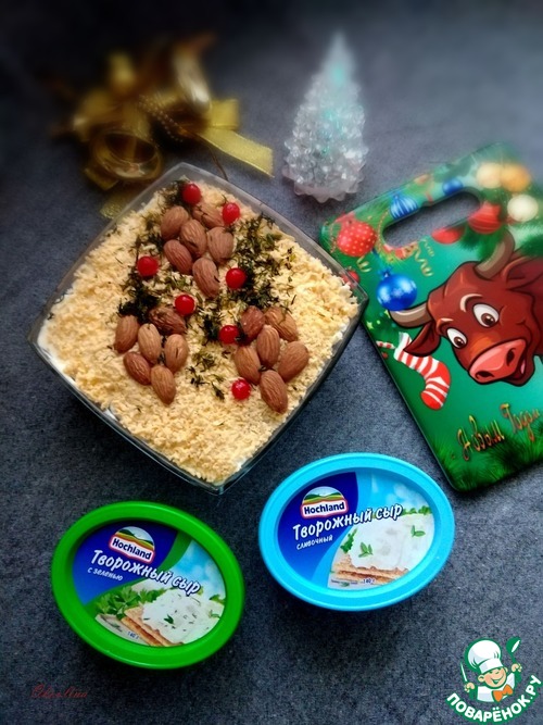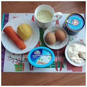 Морковь в этот салат я натру на тёрке и соединю с творожным сыром Hochland сливочный. Майонез не буду класть! Этот шаг и есть моё изменение в классическом салате "Мимоза".