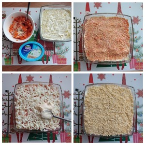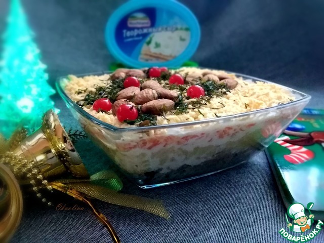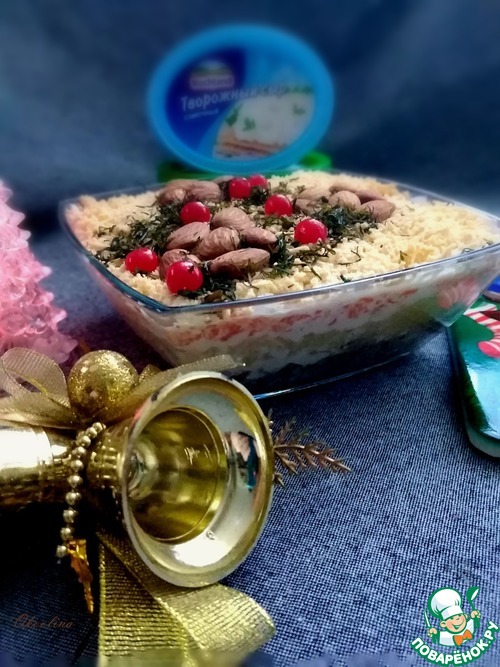 4 слой - морковь натёртая на тёрке и соединённая с творожным сыром