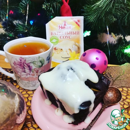 Шоколадная шарлотка с ванильным соусом