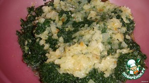 Лук измельчите и обжарьте до золотистого цвета,добавьте к зелени