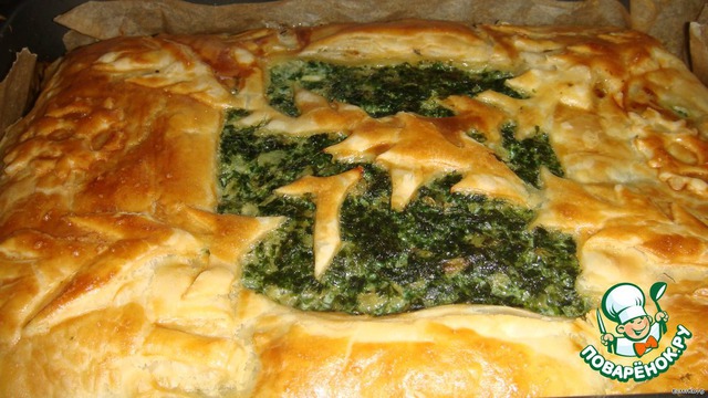 Края скрепите как вам захочется,обмажьте желтком и положите в разогретую духовку до 200С на 35минут