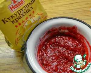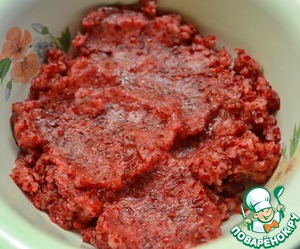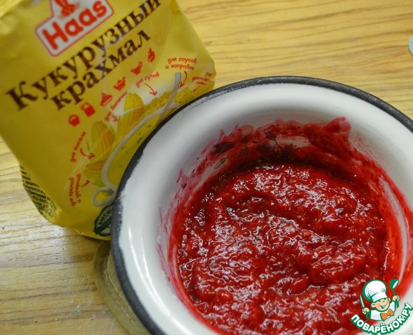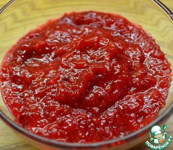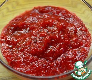Начинка: бруснику с сахаром смолоть в блендере (у меня замороженная, размораживать не стала, поэтому такая консистенция получилась)