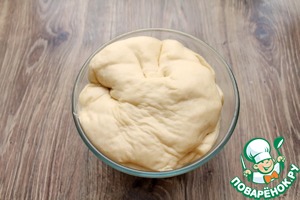 Покройте миску с тестом пленкой и поставьте в теплое место для подъема, примерно на 40-60 минут.