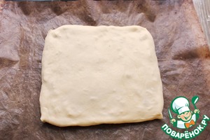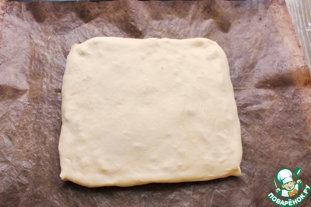Вторую половину раскатайте и накройте сверху. Края подогните под нижнюю часть.