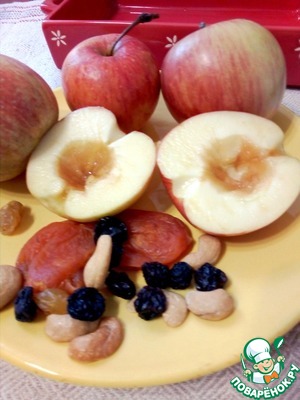 Рецепт «Яблоки печеные с корицей, курагой, орехами»: