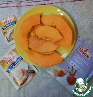 Тыкву моем, нарезаем на дольки толщиной около 1.5 сантиметра. Очищаем от шкурки. Если сорт тыквы Баттернат, можно не чистить.