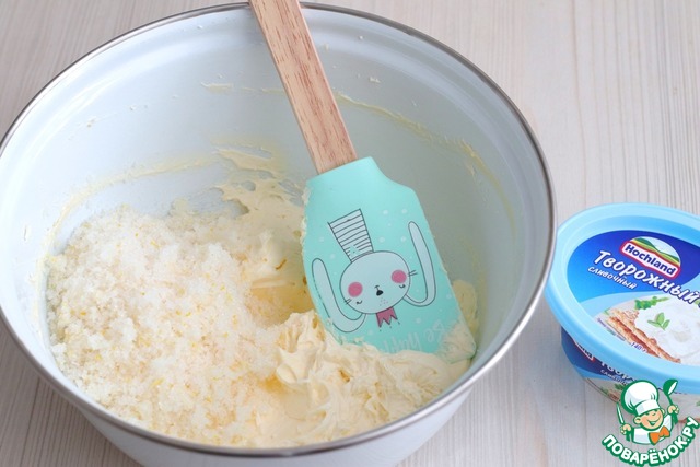 В масляную основу добавить смесь сахара и лимонной цедры. Смесь хорошо вымешать.