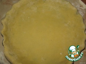 Выкладываем, в, хорошо смазанную маслом форму так, чтобы бортики были закрыты.