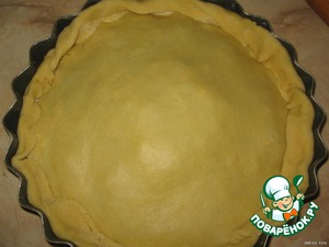 Раскатываем оставшееся тесто и накрываем пирог сверху. Защипываем края.