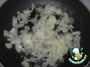 Лук нарезать недлинной соломкой, обжарить на растительном масле.
