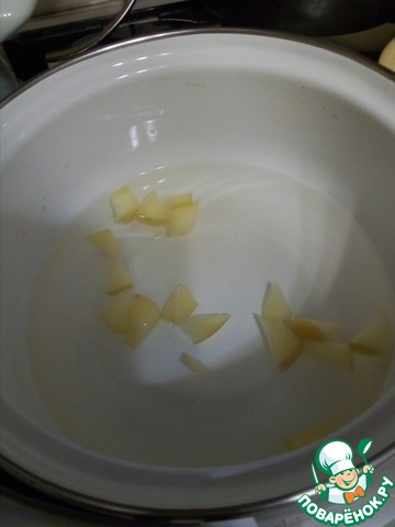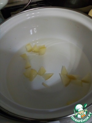 В кипящую воду отправим мелко порезанные яблоки. Варим 2 мин.