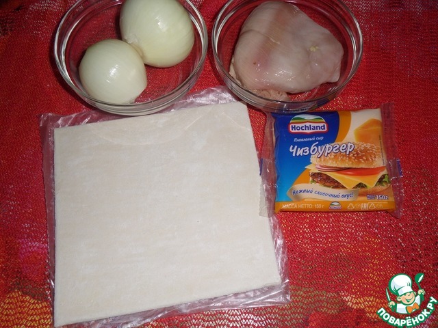 Ингредиенты для «Пирожки с луком, курицей и сыром»: