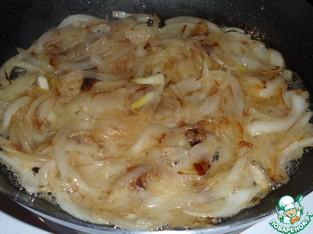 Обжариваем до золотистого цвета. Добавляем щепотку сахара, перемешиваем и убираем сковороду с огня.