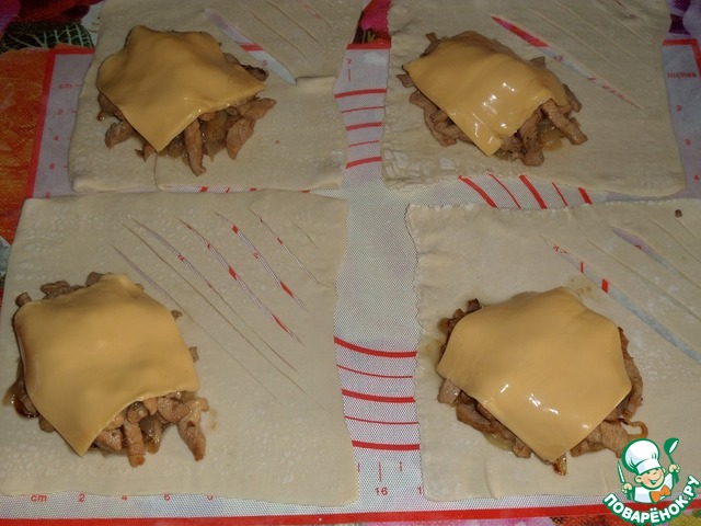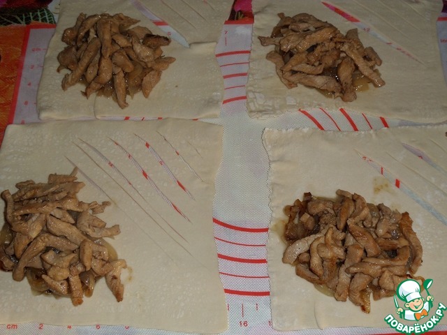 Рецепт «Пирожки с луком, курицей и сыром»: