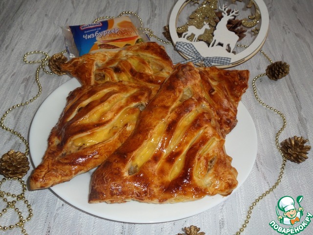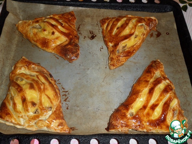 Пирожки из слоеного теста с жареным луком, курицей и плавленым сыром - это просто и вкусно! Аромат выпечки соберет за столом всю семью - проверено! Готовьте с удовольствием!