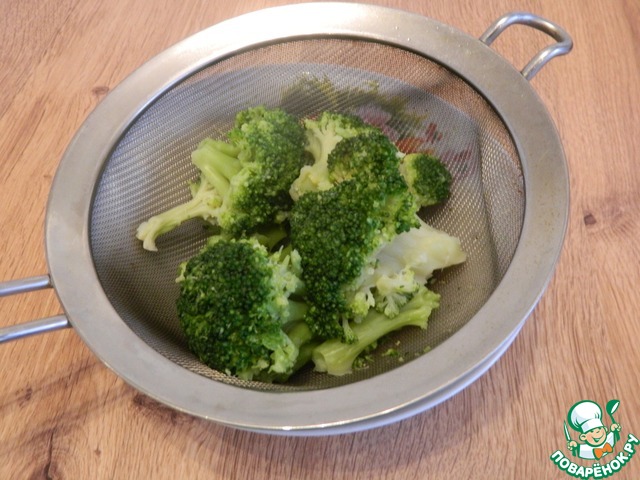Брокколи у меня замороженная, поэтому согласно инструкции, опускаю ее не размораживая в горячую воду и отвариваю в течении 3 минут.