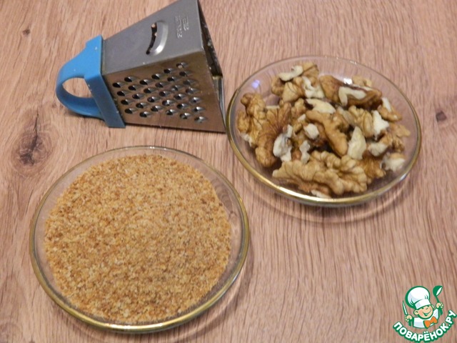 Брокколи тщательно размешаем с сыром. Добавим орехи к брокколи и размешаем до однородности.