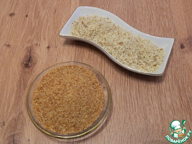 Берем порционно тесто и формируем котлеты, панируем в сухарях.