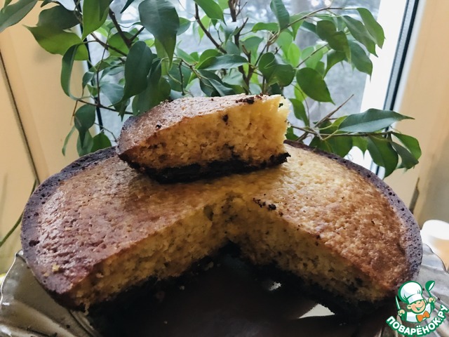 Тесто к выпечке готово. Я буду использовать разовую форму D-18,5 см и высотой-4 см. Можно взять поменьше диаметром, пирог будет повыше. Выложила тесто в форму и отправила на 30 минут, выставив т-180 С. Проверяем на "сухую лучину". Тесто к ней не пристаёт и она сухая - готов! Даём пирогу остыть. Ориентируйтесь на свою духовку. Я переложила его на блюдо. Пока остывает пирог, делаем глазурь в какой-то подходящей посуде, которую можно поставить на огонь. Насыпаем сахар и добавляем лимонный сок. Ставлю на огонь до полного растворения сахара. Это быстро. Сахар можно заменить на сахарную пудру, будет проще.