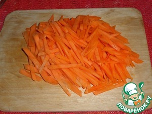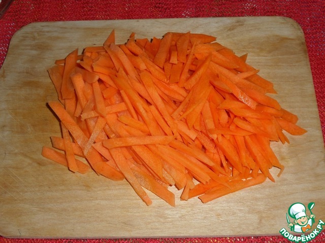 Морковь нарезаем соломкой.