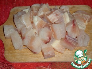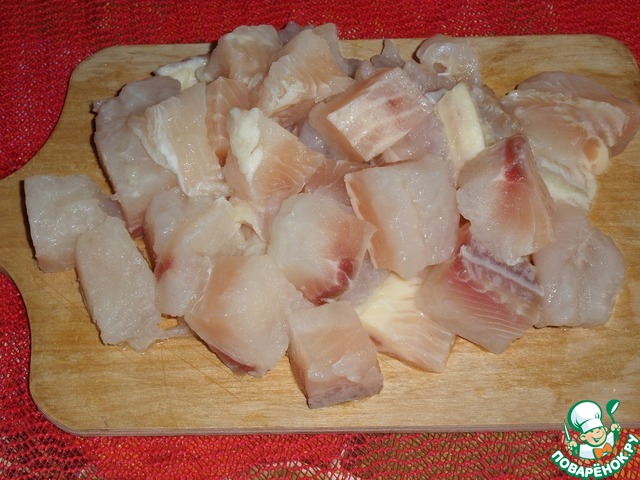 Крупным кубиком нарезаем рыбное филе.