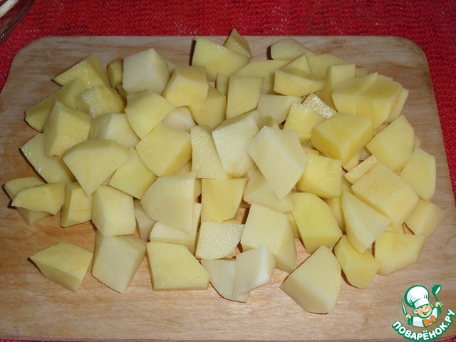 Кубиком нарезаем картофель.