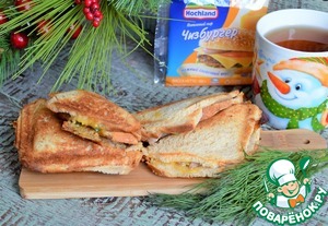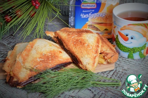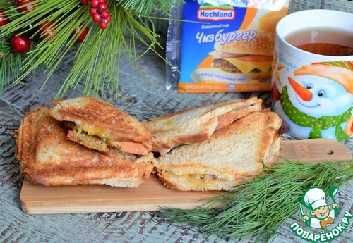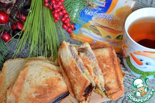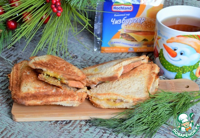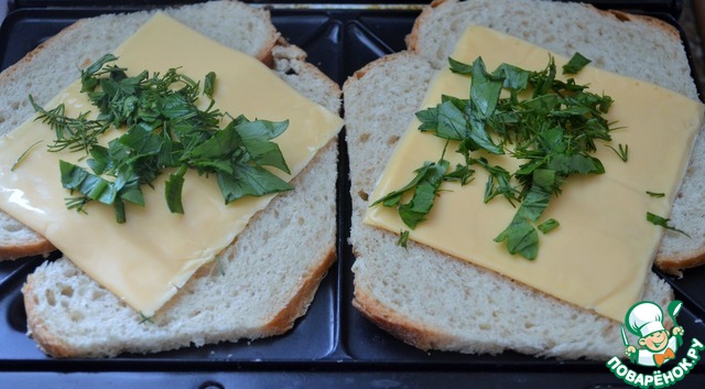 Готовить в сендвичнице 3 - 5 минут. Подать горячими.