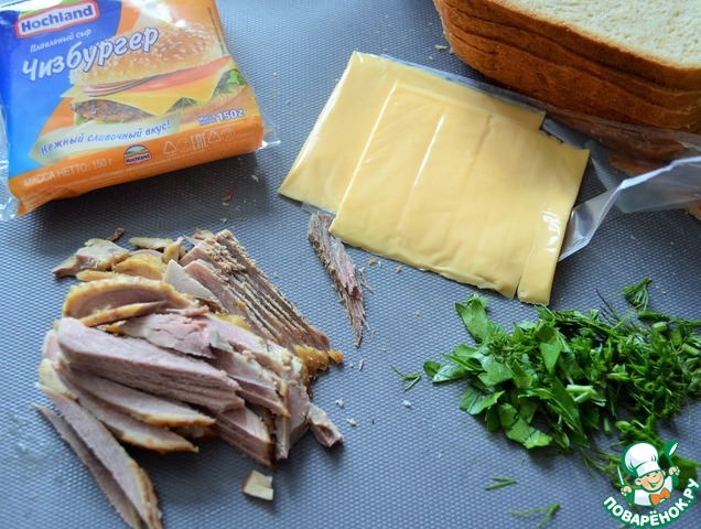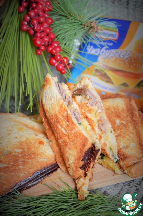 Рецепт «Сендвич с сыром и запечённой уткой»: