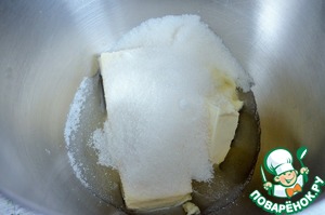 Смешать сыр, сахар и растительное масло, слегка взбить. -