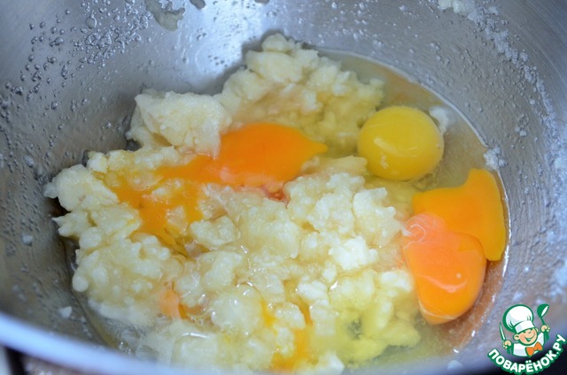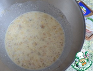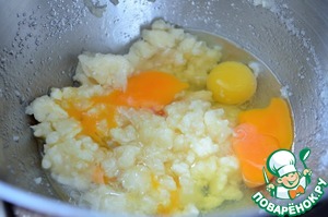 Добавить яйца и соль. Слегка взбить.