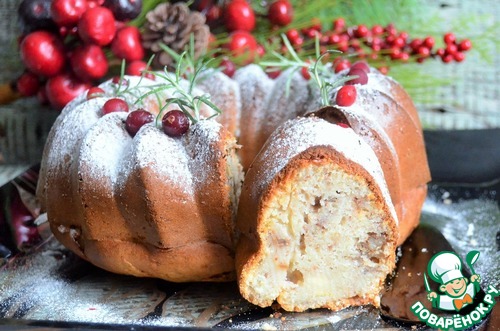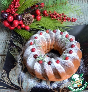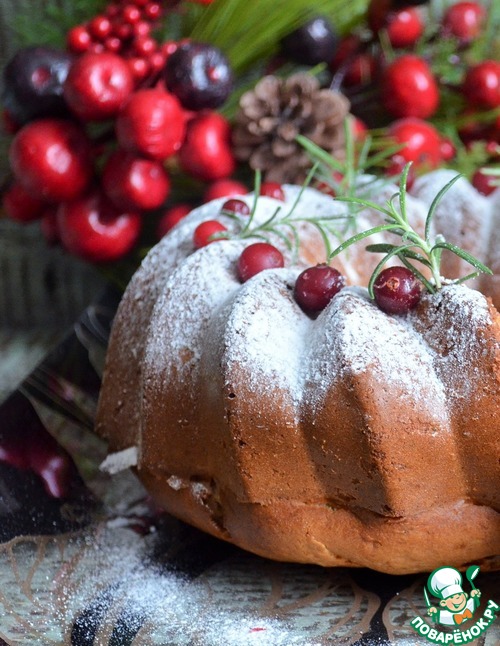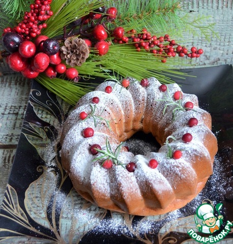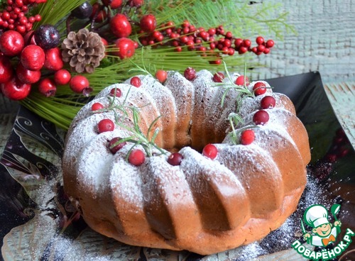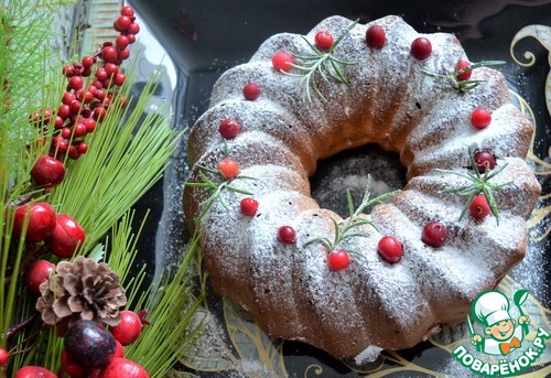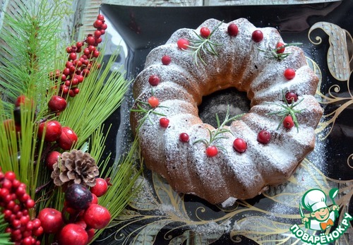 Перед подачей украсить по желанию, например, сахарной пудрой, ягдами клюквы и веточками розмарина.