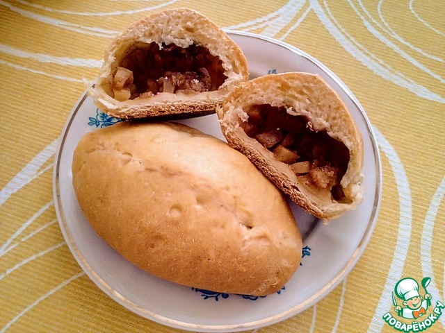 Подошедшее тесто обмять и раскидать на порционные шарики, каждый расплюснуть и в центр выложить яблочную начинку. Сформировать пирожок швом наверх. Накрыть пирожки полотенцем и дать отдохнуть минут 15. Затем выложить пирожки на противень и смазать каждый пирожок взбитым яйцом. Отправить пирожки в духовку при 180 гр до готовности.