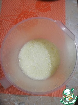 Торт не займёт много Вашего времени и делается очень просто. Для бисквита яйца комнатной температуры взбить до состояния пены. Можете добавить щепотку соли, я в этот раз не добавляла.