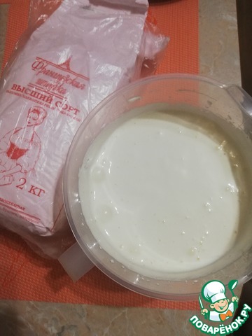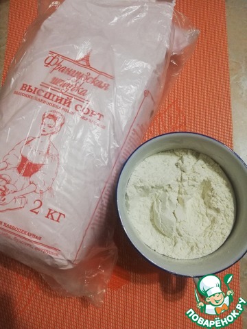 Муку смешать с разрыхлителем. Я использую муку ТМ "Французская штучка" высшего сорта.