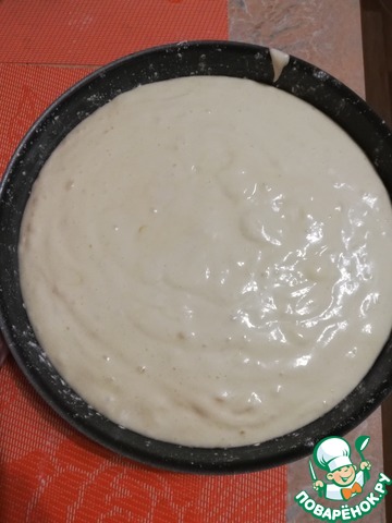 Форму смазать сливочным маслом и слегка обсыпать мукой. Вылить тесто и выпекать в предварительно разогретой до 180 градусов духовке минут 35-40 до сухой лучинки. Диаметр формы у меня 28 см.