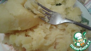 Картофель размять вилкой и выложить третьим слоем.