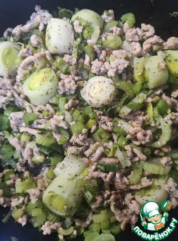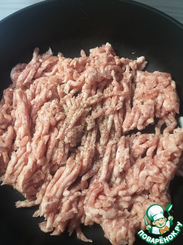 Обжариваем фарш минут 5-7, пока основная масса не поменяет цвет.