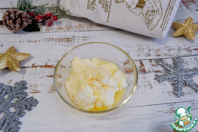 Сливочное масло растопить. 2 ст. л. теста смешать со сливочным маслом и вернуть в чашу.