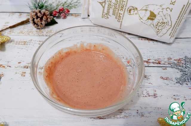 Клубничное пюре прогреть с желтками до 45°С, всыпать сахар и
