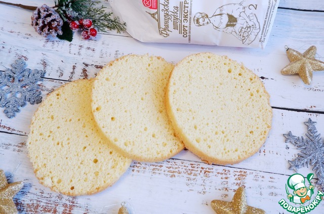 Бисквит разделить на 3 коржа по 2 см толщиной.