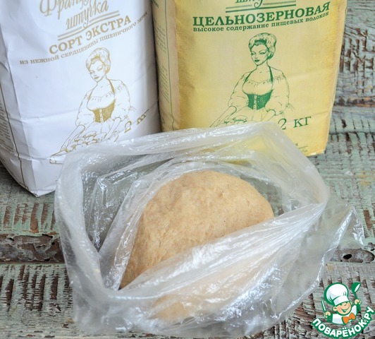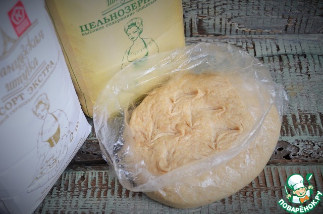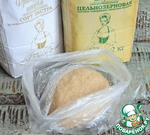 • Влить масло и вымесить однородное тесто. Тесто поместить в пакет, убрать в тёплое место, для выбраживания.