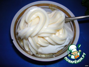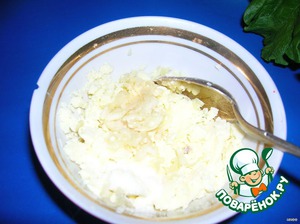 Выдавливаем в желтки через пресс чеснок, добавляем соль, перец, майонез и сметану.