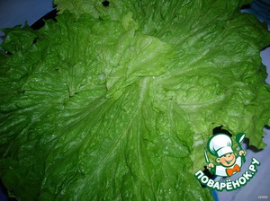 Тарелку (блюдо) выстилаем помытыми и просушенными листьями салата.