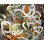 - Нарезаем огурец, крабовые палочки, отварные яйца, лук и пекинскую капусту.